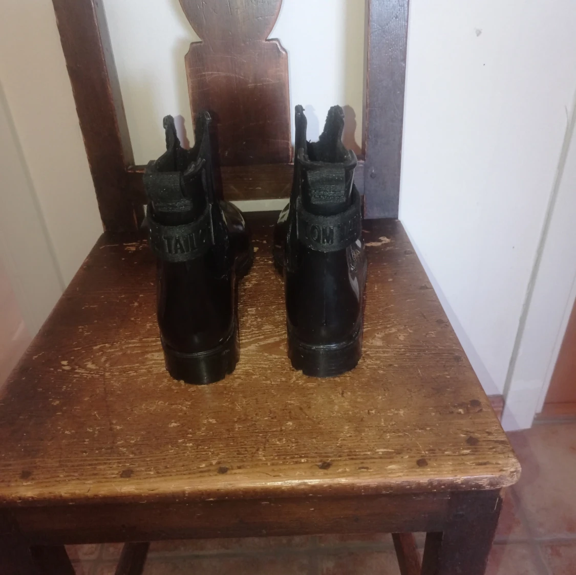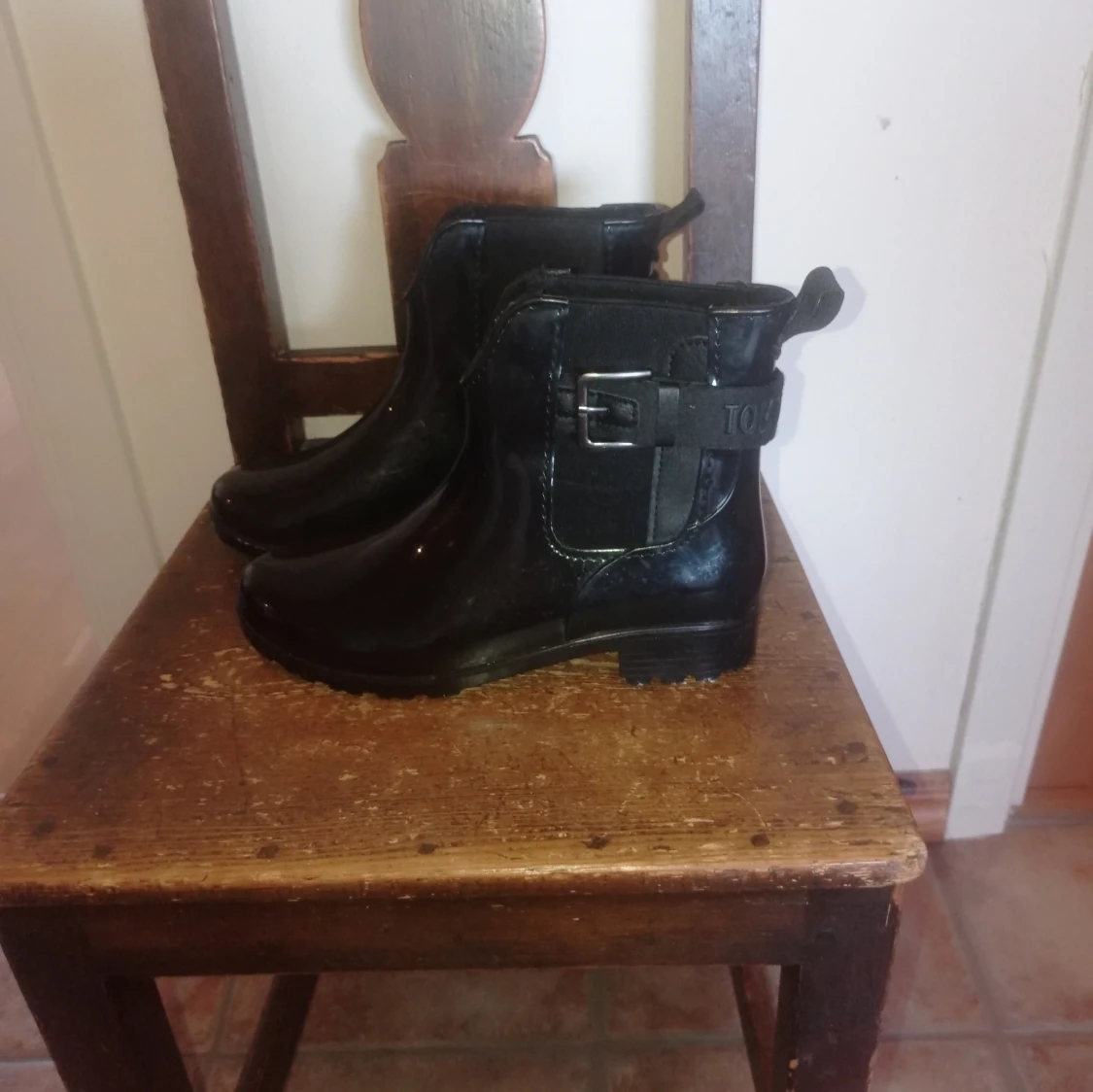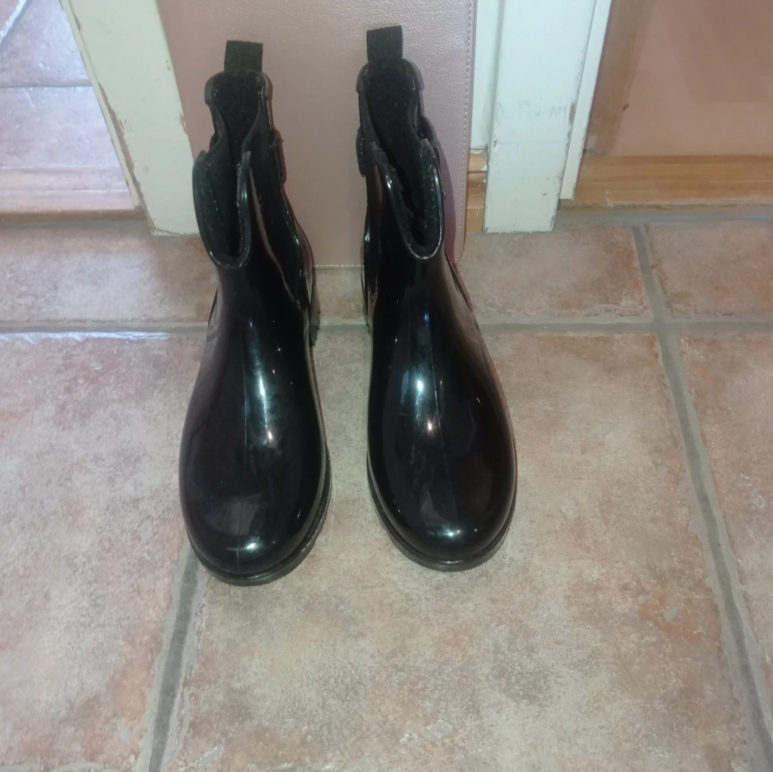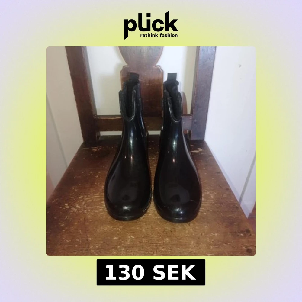 Köpte dessa gummistövlar i en annan second hand butik online,för ett par veckor sedan.Tyvärr var dom för små.Det står storlek 37 på dom,men själv anser jag att det är 36-36/5. Jag har storlek 37 och 23,5 i innersula.Så därför säljer jag dom i storlek 36