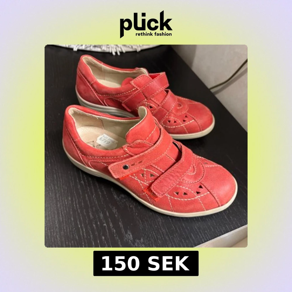 Snygga röda skor från ACO i mocka med vita kontrastsömmar och dekorativa utskärningar. Skorna har rund tå, platt sula och praktisk kardborrestängning för enkel påtagning. Perfekta för dig som vill ha både stil och komfort. Nypris 700kr
