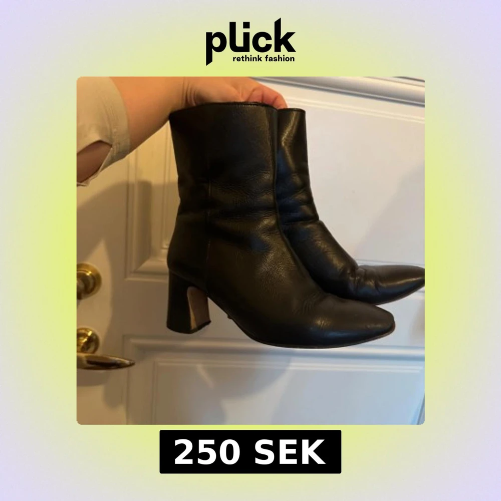 Snygga svarta stövletter i äkta skinn med klack och spetsig tå. Perfekta för en stilren look.