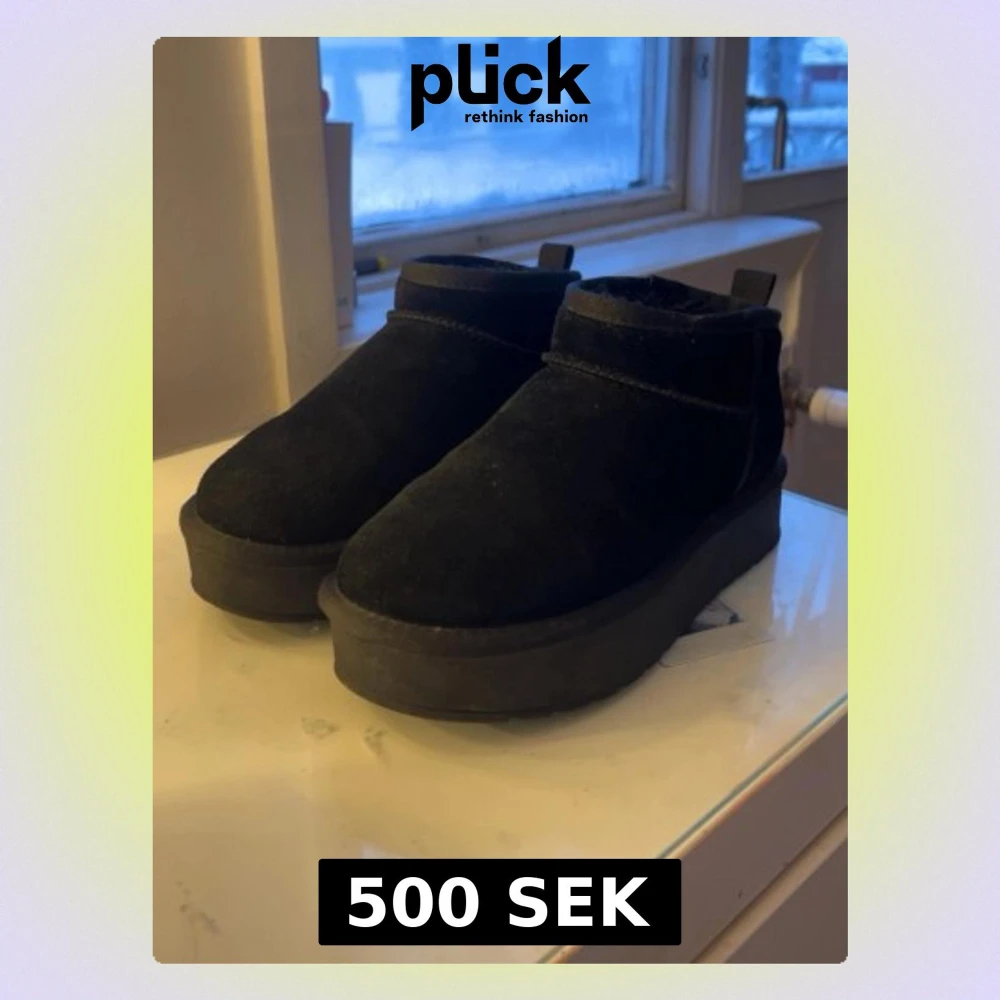 Säljer ett par svarta boots från Pace i mjuk mocka med fluffigt foder på insidan. Skorna har en chunky platt sula och rund tå, perfekta för kalla dagar. Enkla att dra på med ögla bak och riktigt sköna att gå i. ny pris 800
