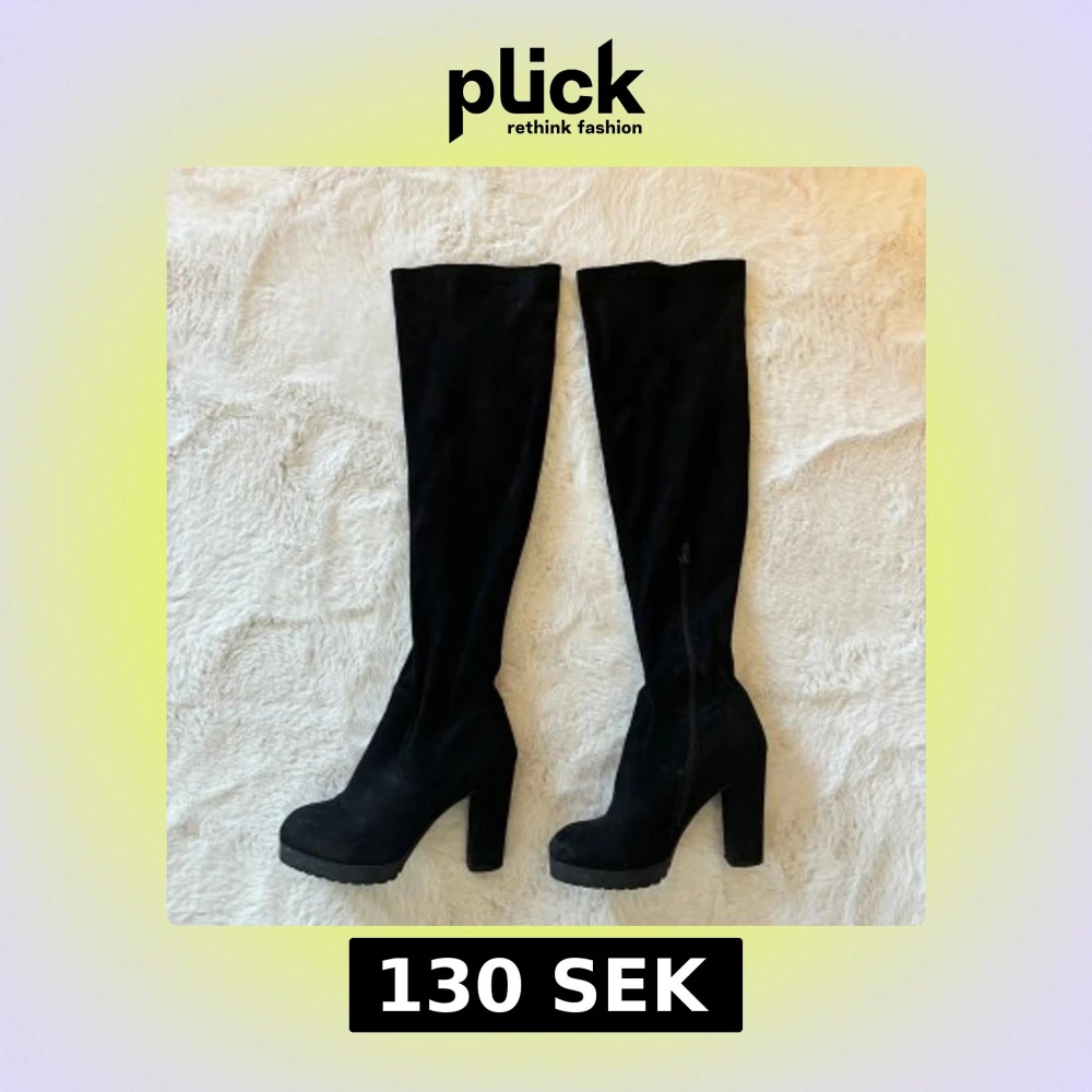 Snygga svarta overknee boots i mocka med hög klack och dragkedja på insidan. Från Tiamo i storlek 37
