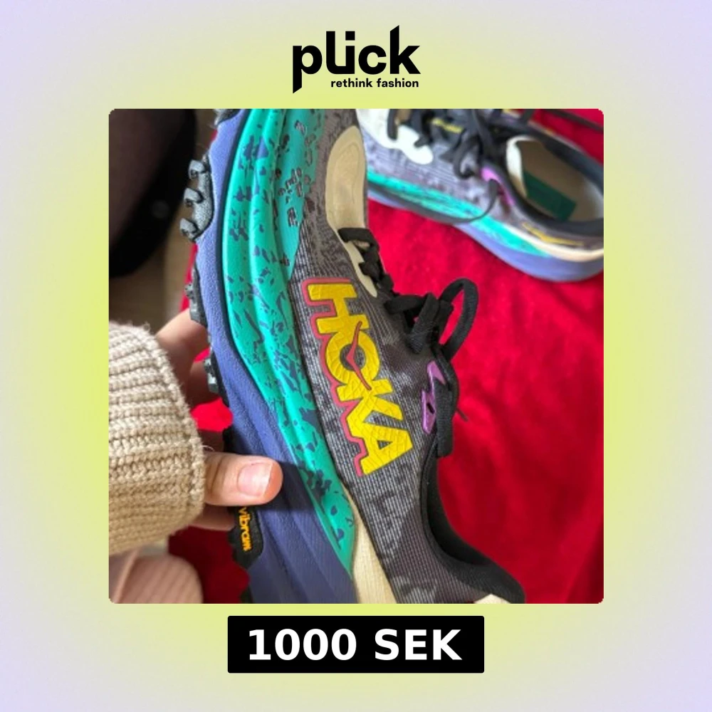 Grov sula med Vibram-gummi för extra grepp, snörning och stor HOKA-logga på sidan. Perfekta för dig som vill sticka ut på löprundan. Helt nya aldrig använd . Nypris = 2 195