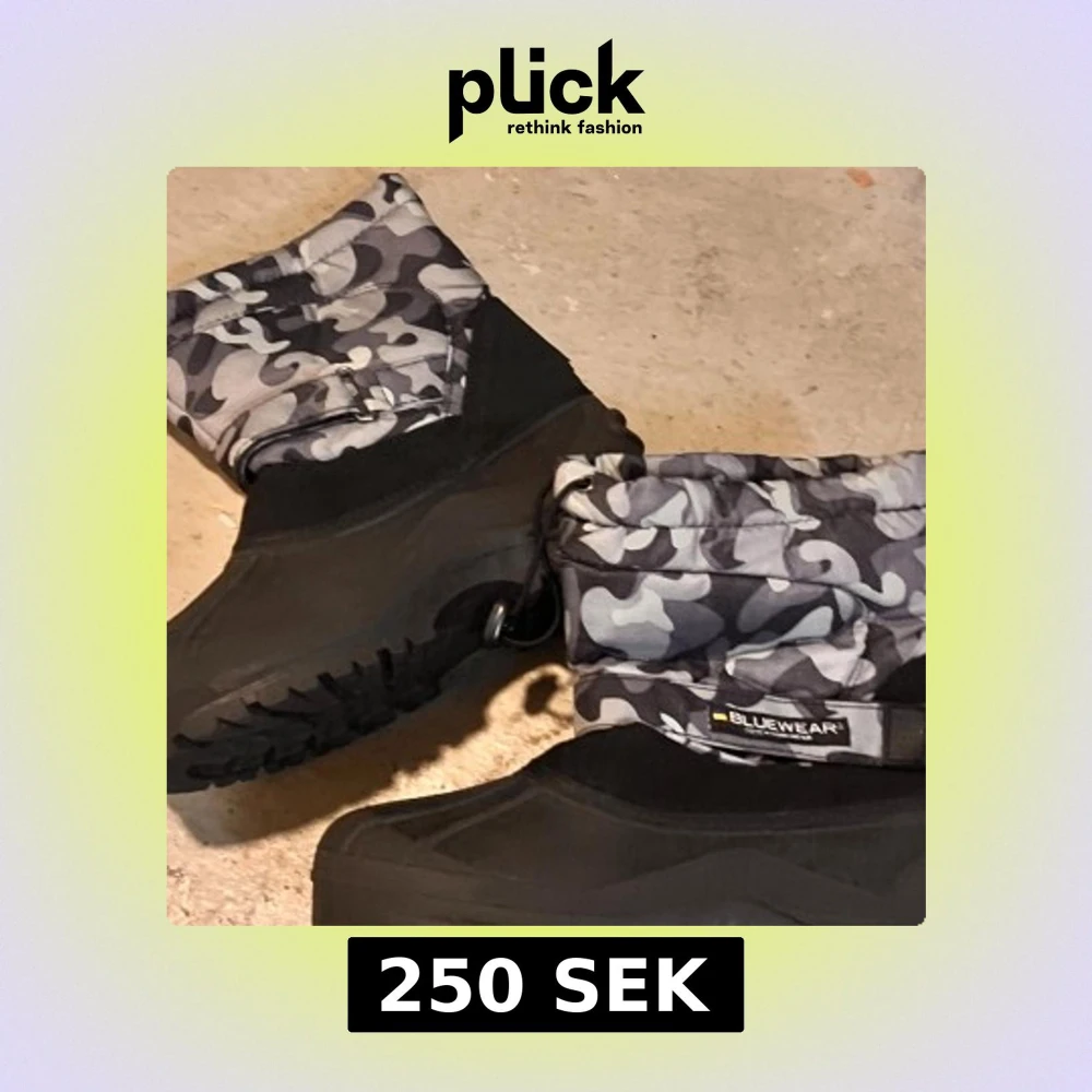 Tuffa vinterstövlar från Bluewear med svart och grått camouflagemönster upptill och grov sula för extra grepp. Ovandelen är i slitstark syntet och nederdelen i kraftig gummi. Dragsko upptill för att hålla snön ute. Perfekta för kalla dagar.
