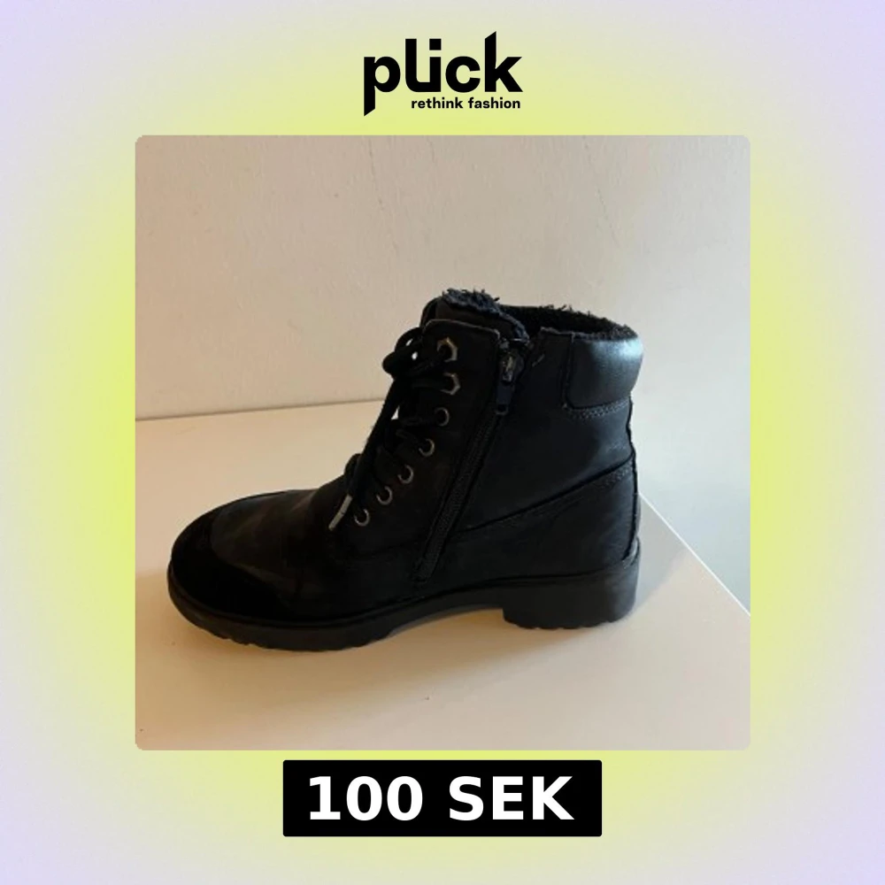 Snygga svarta boots med både snörning och dragkedja för enkel på- och avtagning. De har en robust sula och är fodrade för extra värme. Perfekta för kyligare dagar.