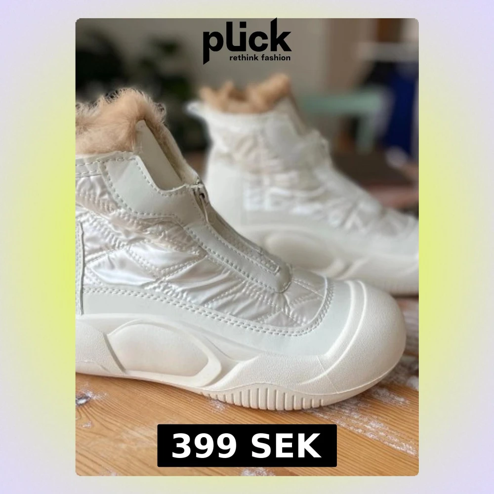 Säljer ett par vita ankelhöga moon boots med fluffig fuskpäls på insidan och quiltad utsida. Oanvända. Skorna har dragkedja framtill. Perfekta för kalla dagar när du vill hålla stilen och värmen.