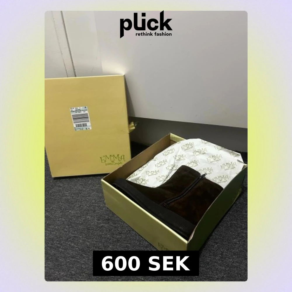Säljer ett par bruna kängor från Emma i storlek 37. Skorna är tillverkade i mjuk mocka med dragkedja på sidan och har en platt, mörk sula. Perfekt för dig som gillar enkel och stilren design med naturliga material. Nypris ca 800-900kr