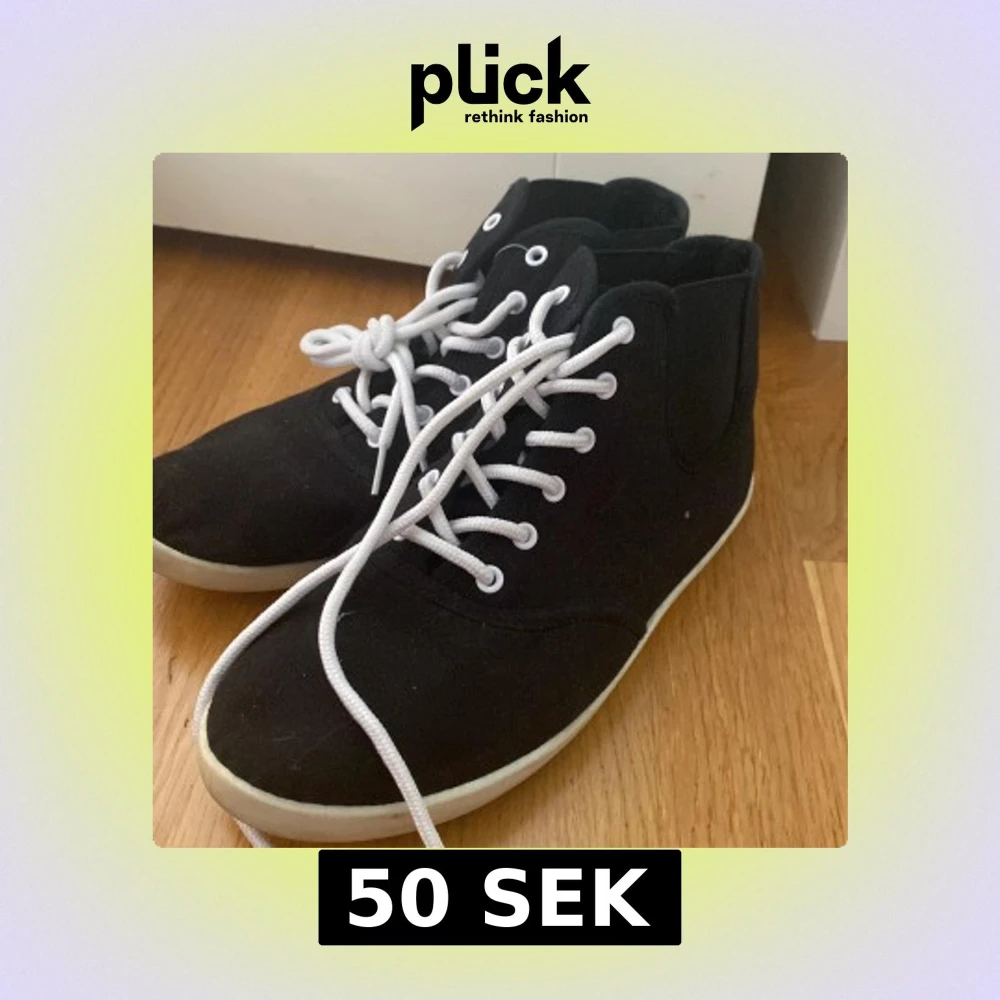 Svarta sneakers i canvas med högt skaft och vita snören. Skorna har vit sula och en klassisk, enkel design som passar till det mesta. Perfekta för dig som gillar stilrena och bekväma skor med en sportig vibe.