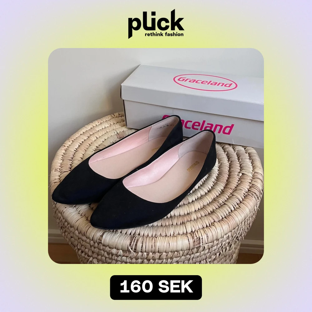 Snygga och stilrena svarta ballerinaskor från Graceland i mycket bra skick. De har en spetsig tå och är perfekta för både vardag och fest.