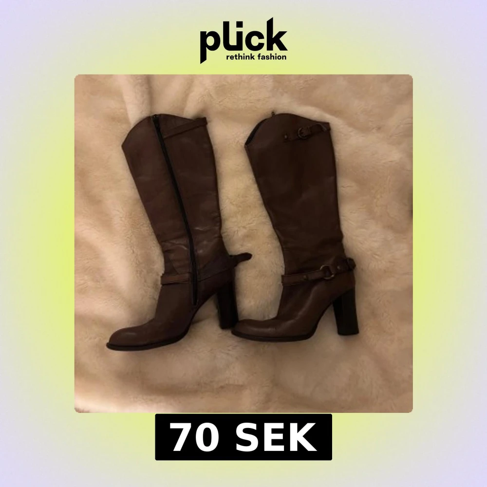 Snygga bruna stövlar i äkta skinn med hög klack och dekorativa spännen. Dragkedja på insidan och rund tå. Tillverkade i Italien, klassisk modell som passar till många outfits.