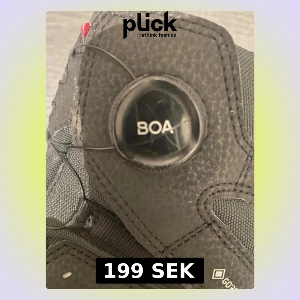Säljer ett par svarta boots från Viking med BOA-snörningssystem och Gore-Tex-material. Skorna har robust gummisula i brun färg, detaljer i grått och meshpartier för extra komfort. Perfekt för dig som vill ha funktionella och snygga boots med modern teknik.
