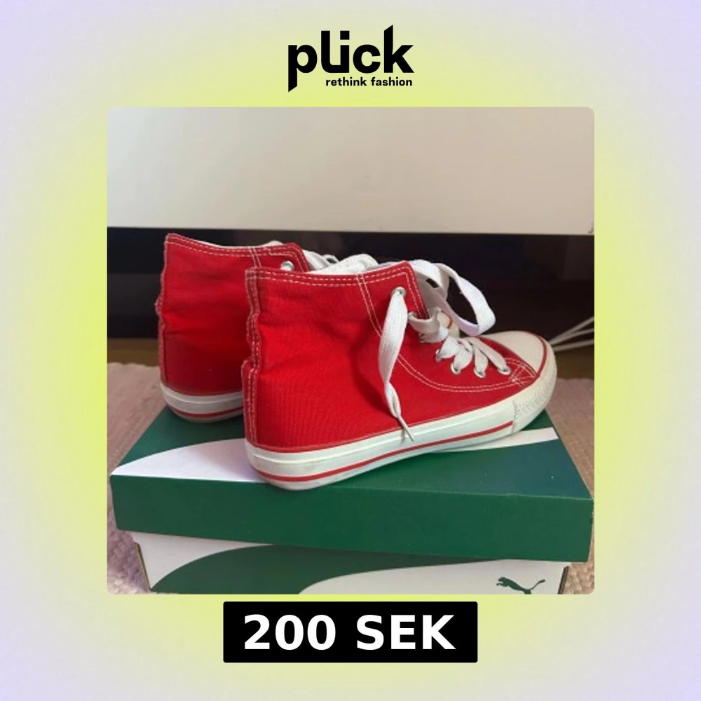 Snygga röda sneakers i klassisk high-top modell med vit gummisula och tå, vita snören och kontrastsömmar. Skorna har rund tå och är tillverkade i canvas. Perfekta för dig som vill sticka ut med färg på fötterna.