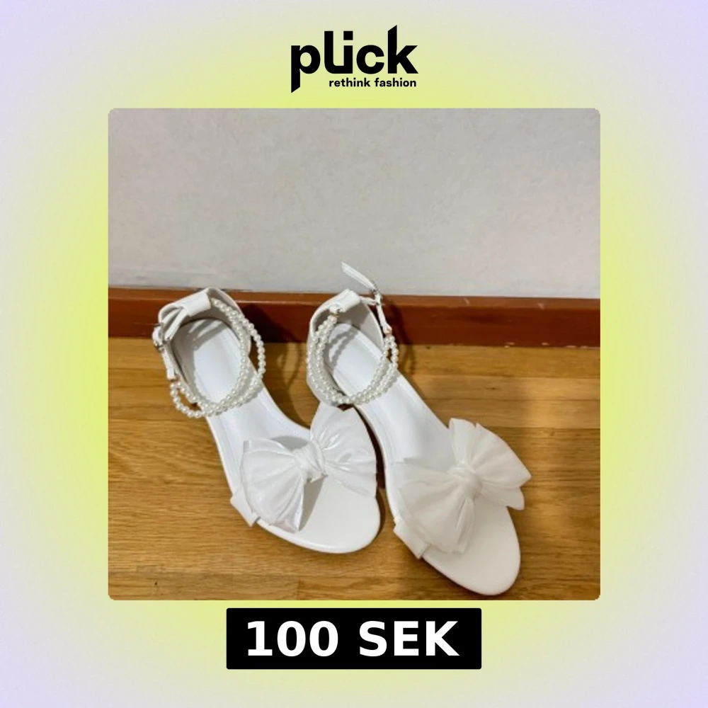 Eleganta vita klackar med en rosett framtill och dekorativa pärlor runt vristen. Perfekta för en stilren look.