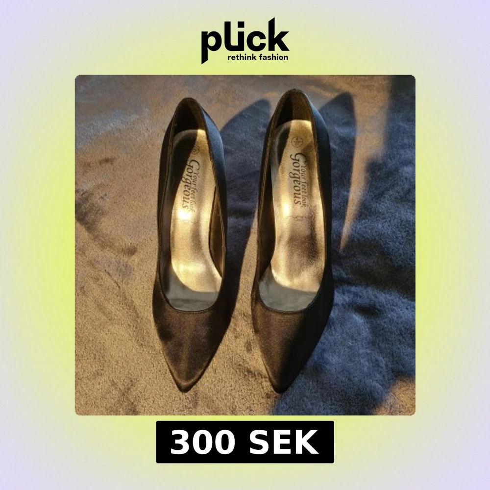 Snygga svarta pumps från Gorgeous i satinliknande material med spetsig tå och silvrig smal klack. Perfekta för dig som vill ha en elegant och stilren look. Klacken är medelhög och ger en klassisk siluett.