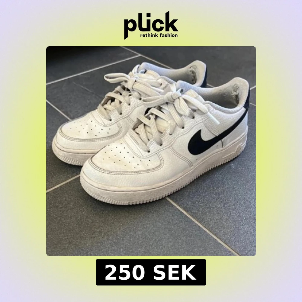 Hej, säljer dessa vita Nike skor med svart Nike tecken. Dom är uppnötta i hälen men kommer såklart att fixas ifall någon vill köpa!