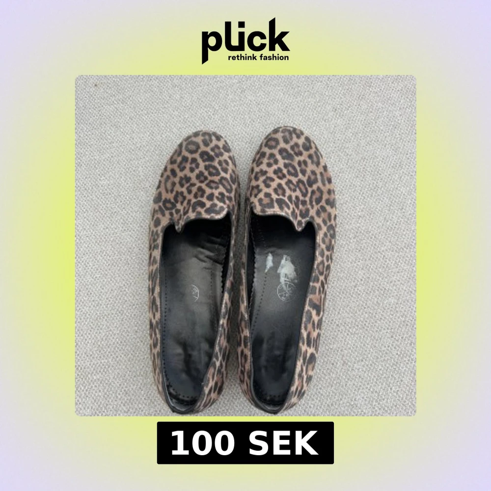 Snygga ballerinaskor/ loafers med leopardmönster i bruna och svarta toner. Skorna har rund tå och platt sula, samt svart innersula. Perfekta för dig som vill sticka ut med ett djurmönster och ändå hålla det bekvämt.