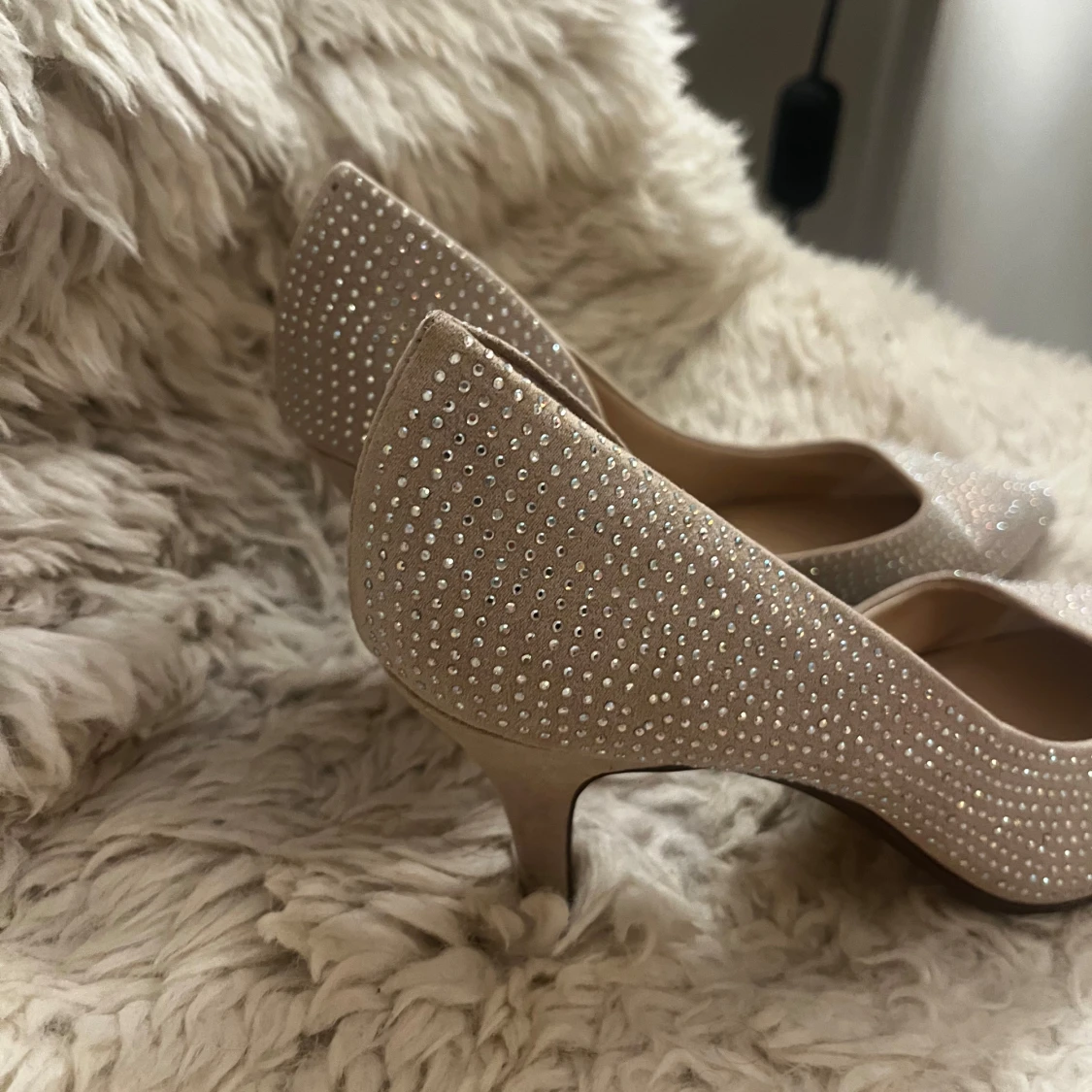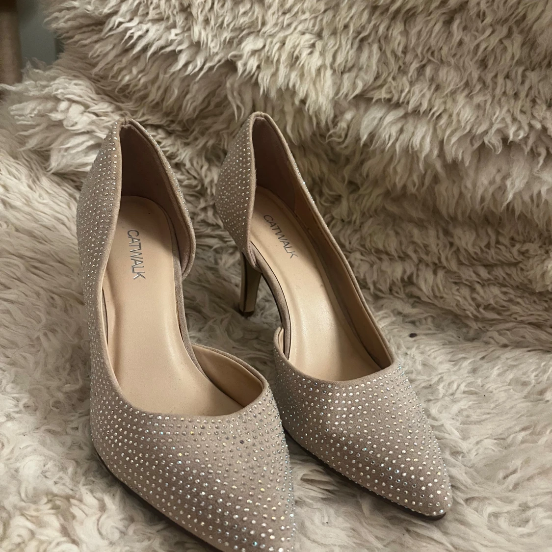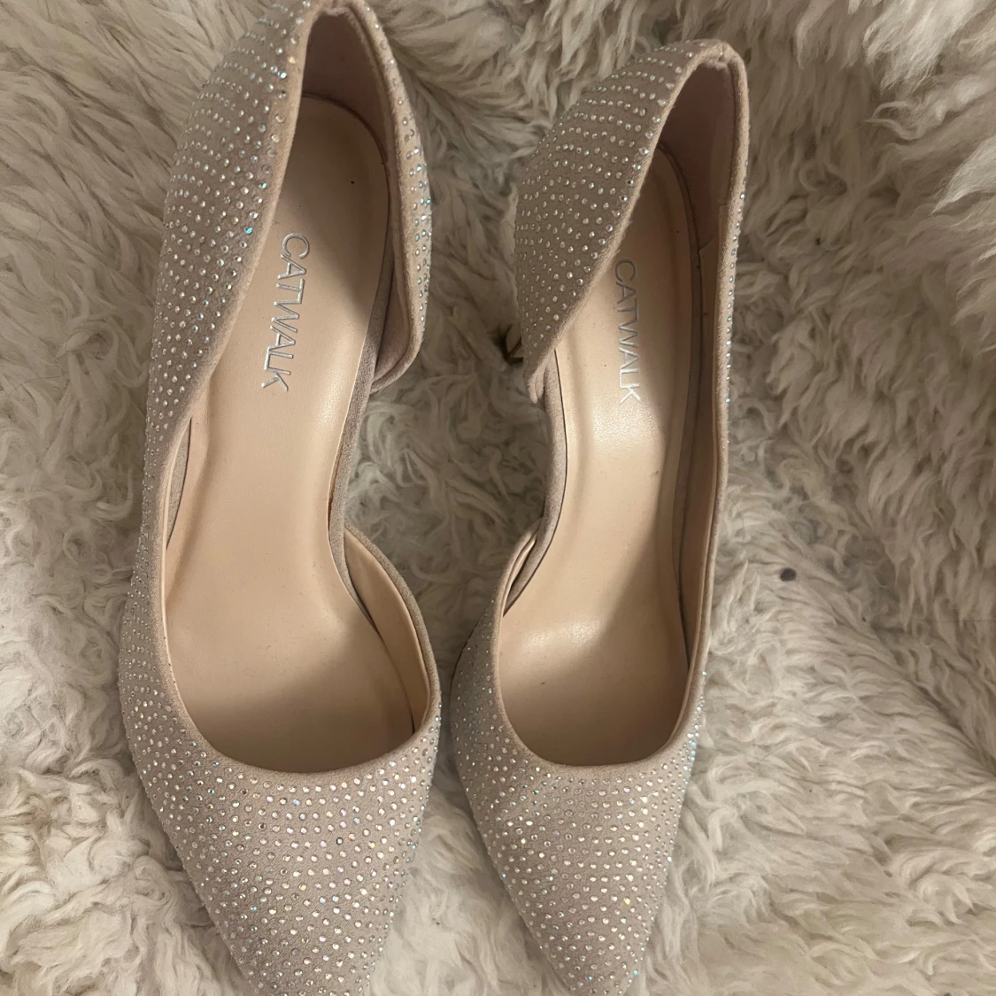 Eleganta beige pumps från Catwalk med spetsig tå och klack. Skorna är dekorerade med glittriga detaljer som ger en lyxig känsla. Perfekta för speciella tillfällen.