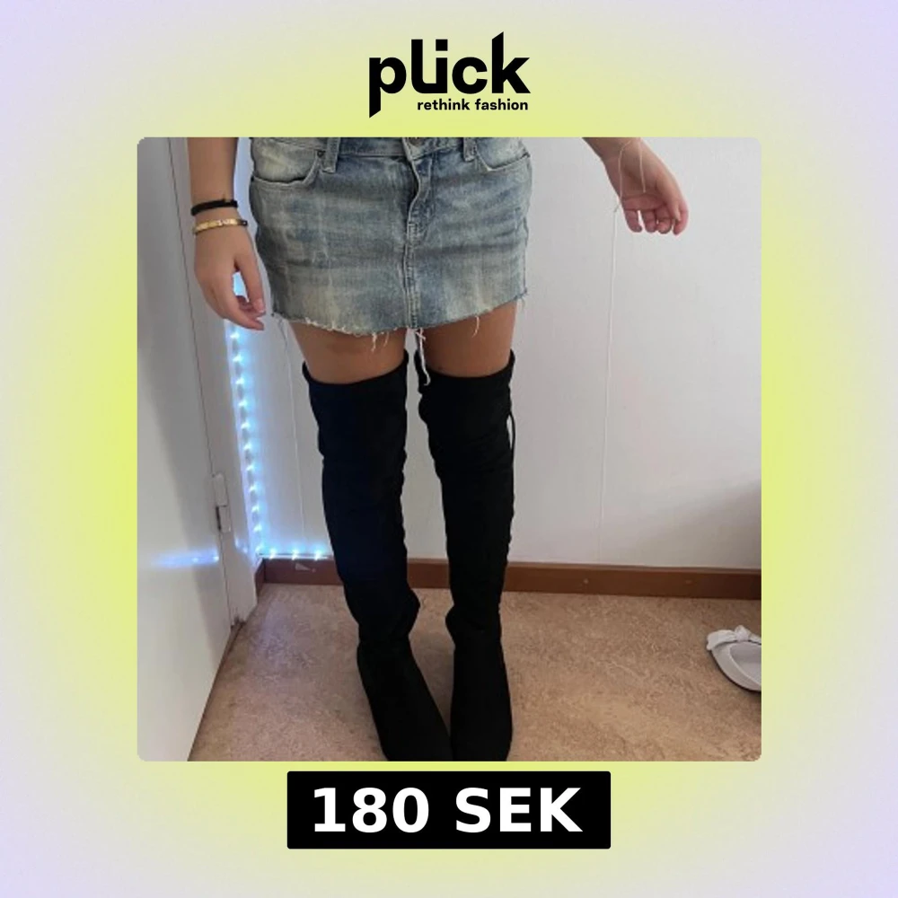 Snygga svarta lårhöga stövlar i mjuk mocka med låg klack och rund tå. Stövlarna har snörning upptill baktill för att sitta perfekt på benet. Perfekta för att lyfta vilken outfit som helst.💕 PRIS KAN DISKUTERAS 💕