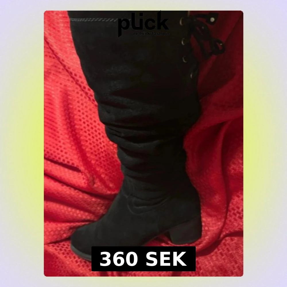 Säljer ett par höga svarta stövlar från Francesco Donni i mjuk mocka. Skorna har snörning baktill, dragkedja på insidan och en stadig låg klack. Perfekta till höst- och vinterlooken och ger en snygg siluett till outfiten.