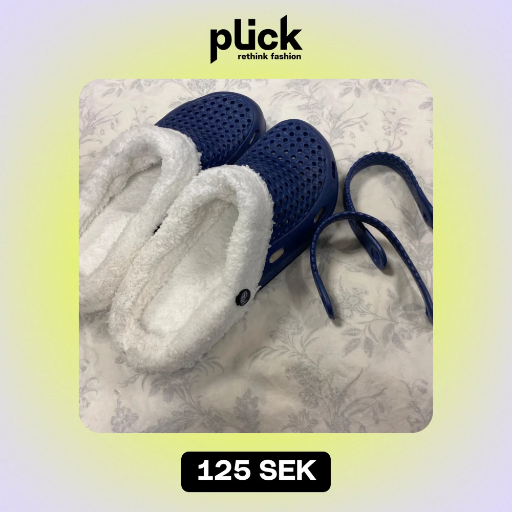 Mysiga blå tofflor med avtagbara remmar och vit pälsfoder. Perfekta för kalla dagar hemma. Sulan är robust och ger bra grepp. Storlek kvar 40,41 42 . Tjocka fleece inuti, rekommenderar att välja 2 Stlk större än som är i vanlig, till exempel storlek 41 passar som är Stlk 39 i vanligt storlek