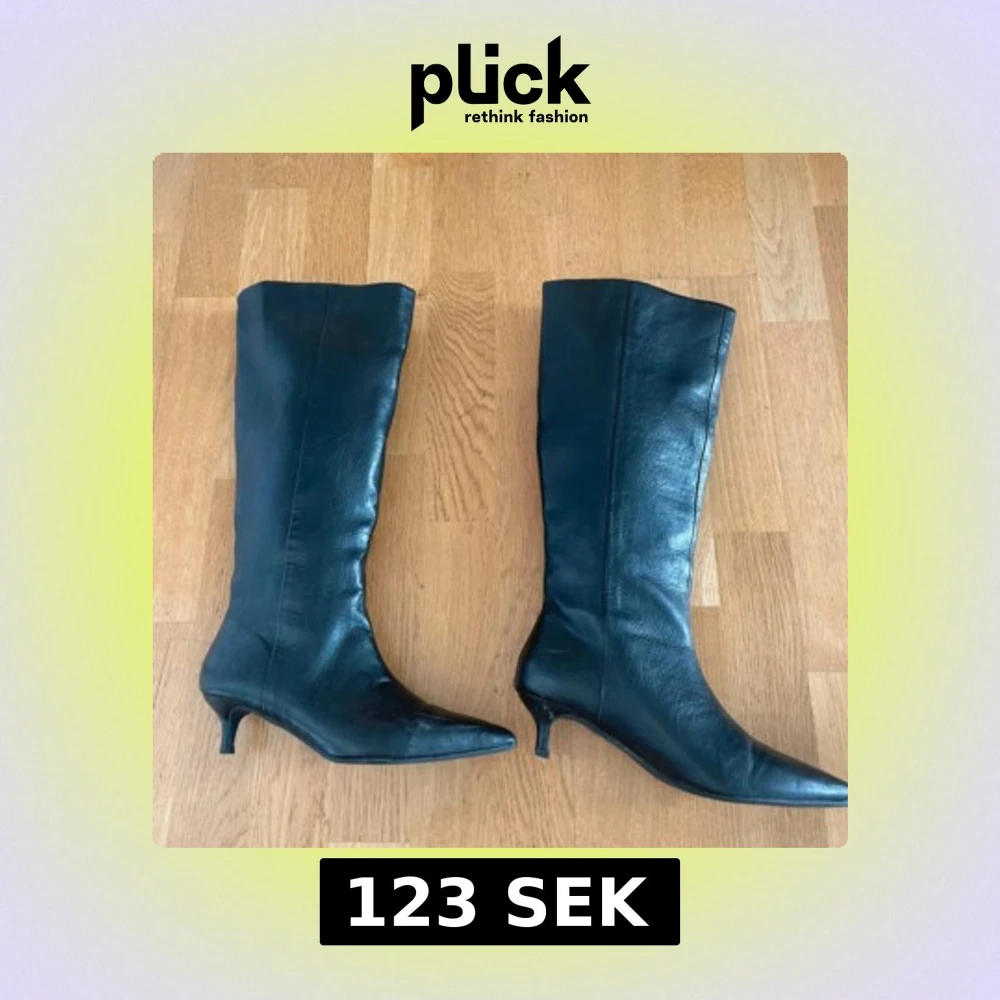 Söker ett par svarta knähöga stövlar med smal klack och spetsig tå från Gina tricot:)!