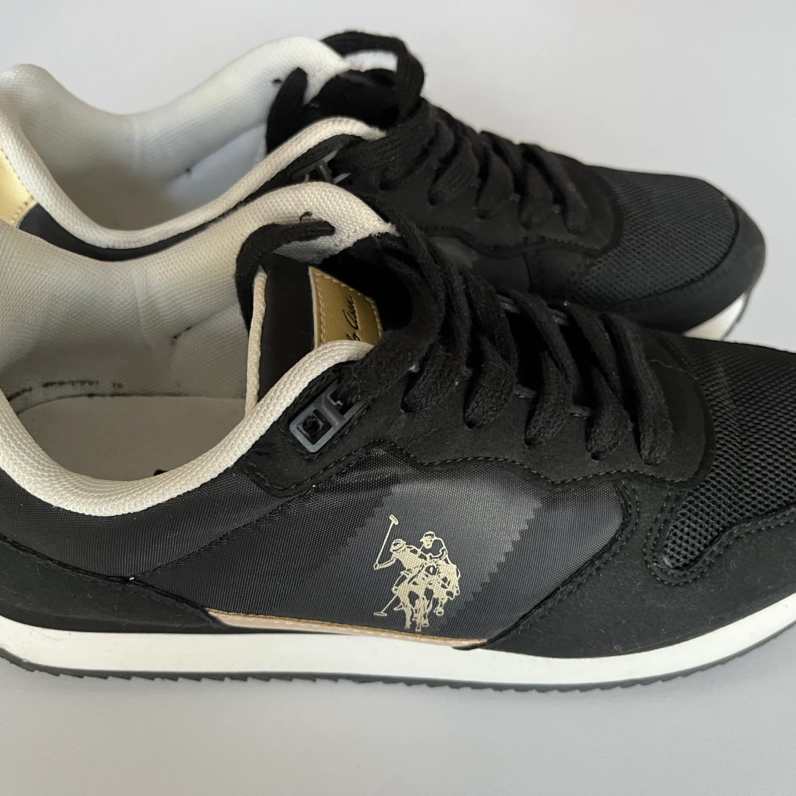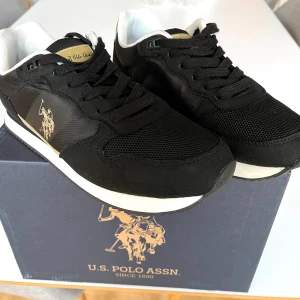 Sneakers, US Polo Assn säljes. Svarta med guld detaljer. Använda ett fåtal gånger, så väldigt fina. Psssar dessvärre inte min fot.