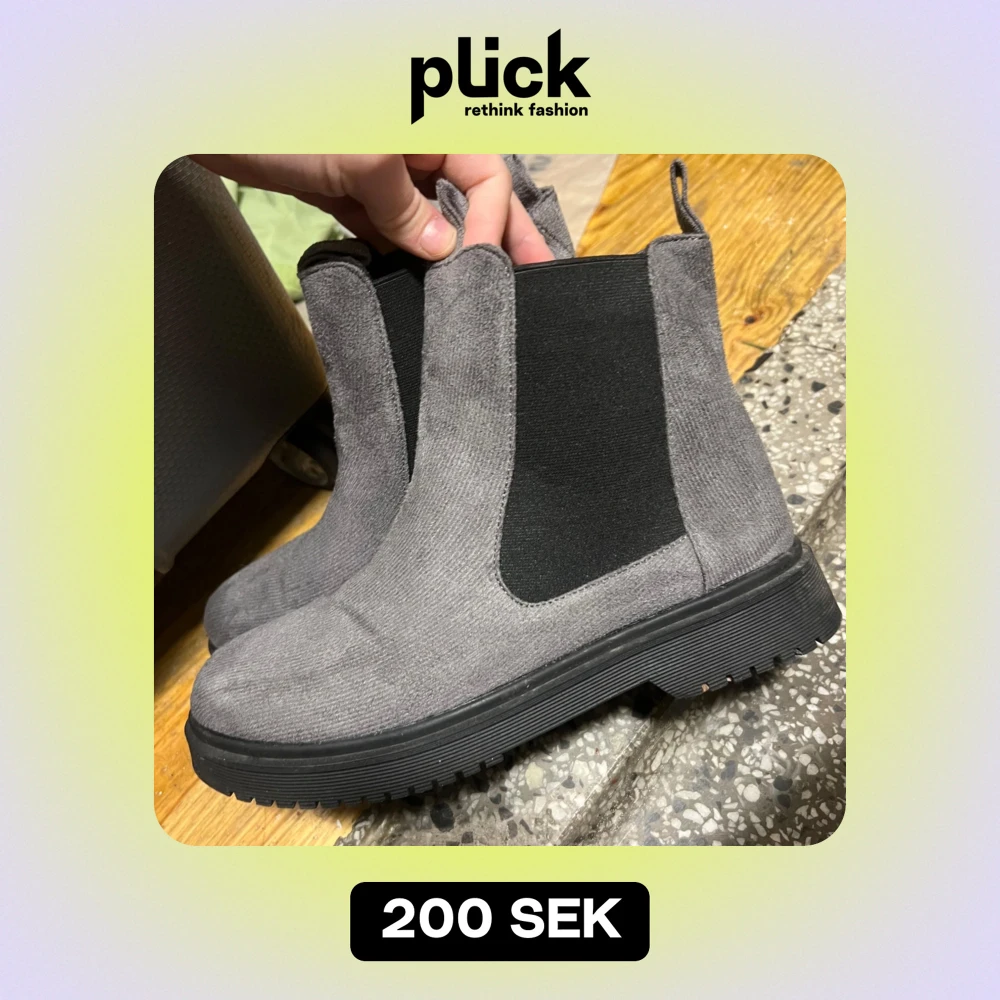 Snygga grå Chelsea boots i mocka med elastiska svarta paneler på sidorna för enkel på- och avtagning. De har en robust svart sula som ger bra grepp. Perfekta för höst och vår, dessa boots är både stiliga och bekväma. Passar till både vardag och lite finare tillfällen.