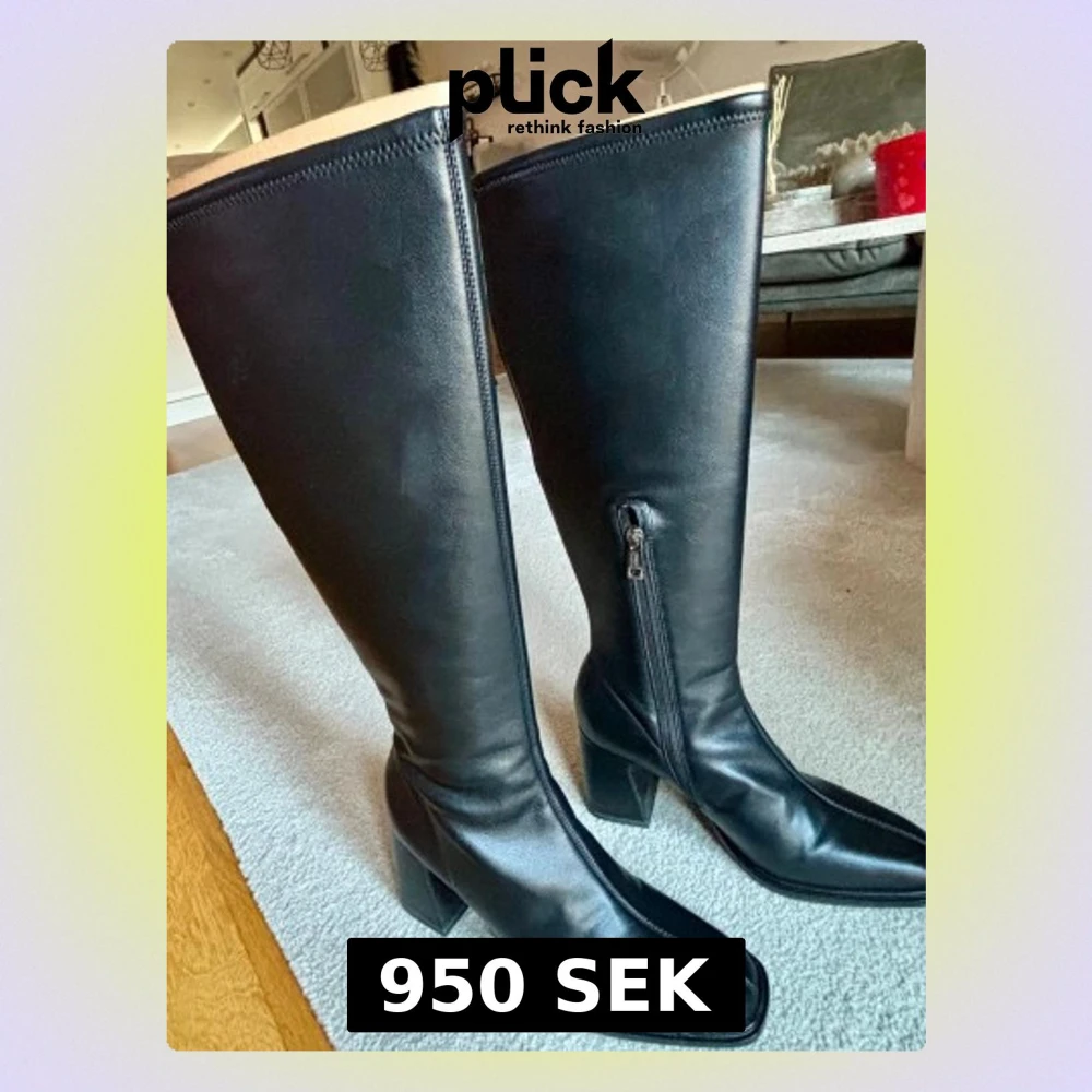 Säljer ett par svarta höga tamaris stövlar med blockklack och spetsig tå. Tillverkade i 100% imiterat skinn och syntetmaterial. Stövlarna har en elegant design med dragkedja på sidan och passar perfekt till dig som gillar stilrena och trendiga skor. 1800kr ny pris. De är oanvända.
