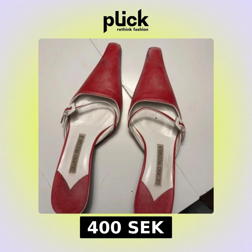 Snygga röda klackskor från Luciano Padovan med spetsig tå och elegant design. I skinn, bra skick och passar storlek 38.