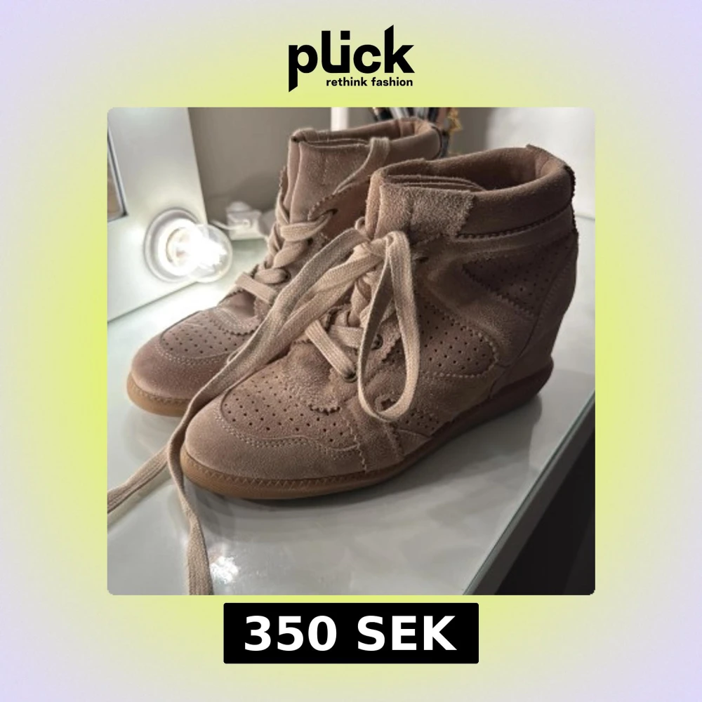 Snygga beige sneakers med kilklack och perforerat mönster. Skorna har snörning och är tillverkade i mjuk mocka med gummisula. Perfekt för dig som vill ha lite höjd men ändå en sportig vibe. De har rund tå och coola detaljer på sidorna.