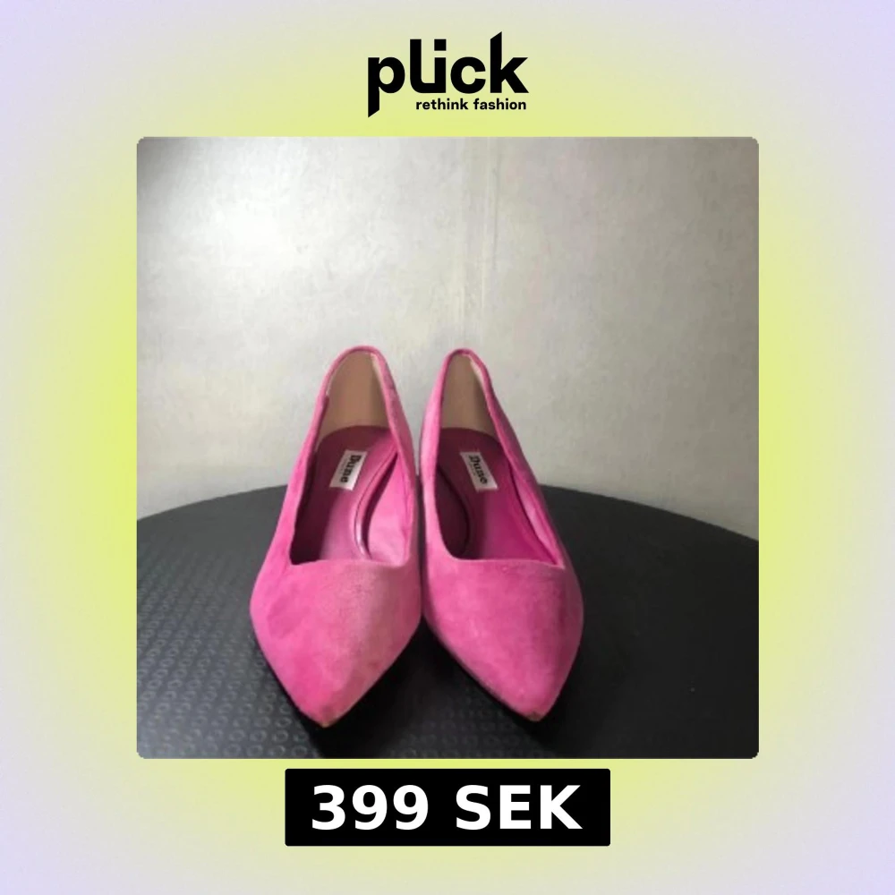 Säljer två par eleganta pumps från Dune. Ett par i rosa mocka med spetsig tå och ett par glittriga med färgglada paljetter och rosett. Perfekta för att sätta färg på din outfit!