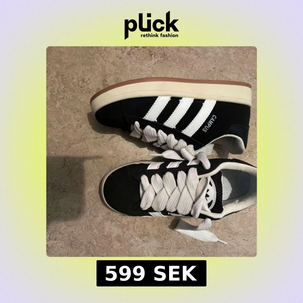 Snygga svarta sneakers från Campus med klassiska vita ränder på sidorna och breda vita skosnören. Skorna har en platt sula i vitt och brunt och är perfekta för en streetwear-look. Ovandelen är i syntetmaterial och insidan är fodrad i textil.