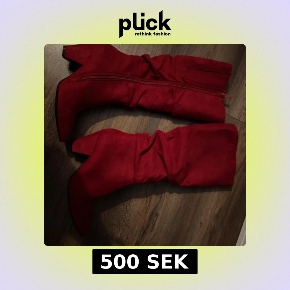 Snygga röda stövlar i mockaimitation med spetsig tå och bred klack. Stövlarna har dragkedja på insidan och en slouchy passform som ger en cool vibe. Perfekta för att lyfta vilken outfit som helst med färg och attityd.