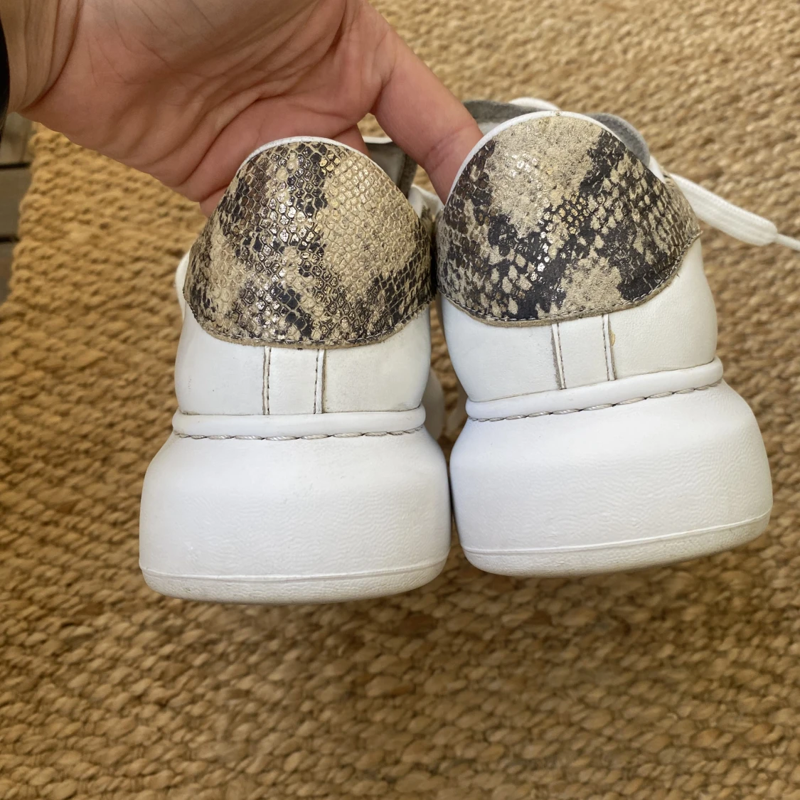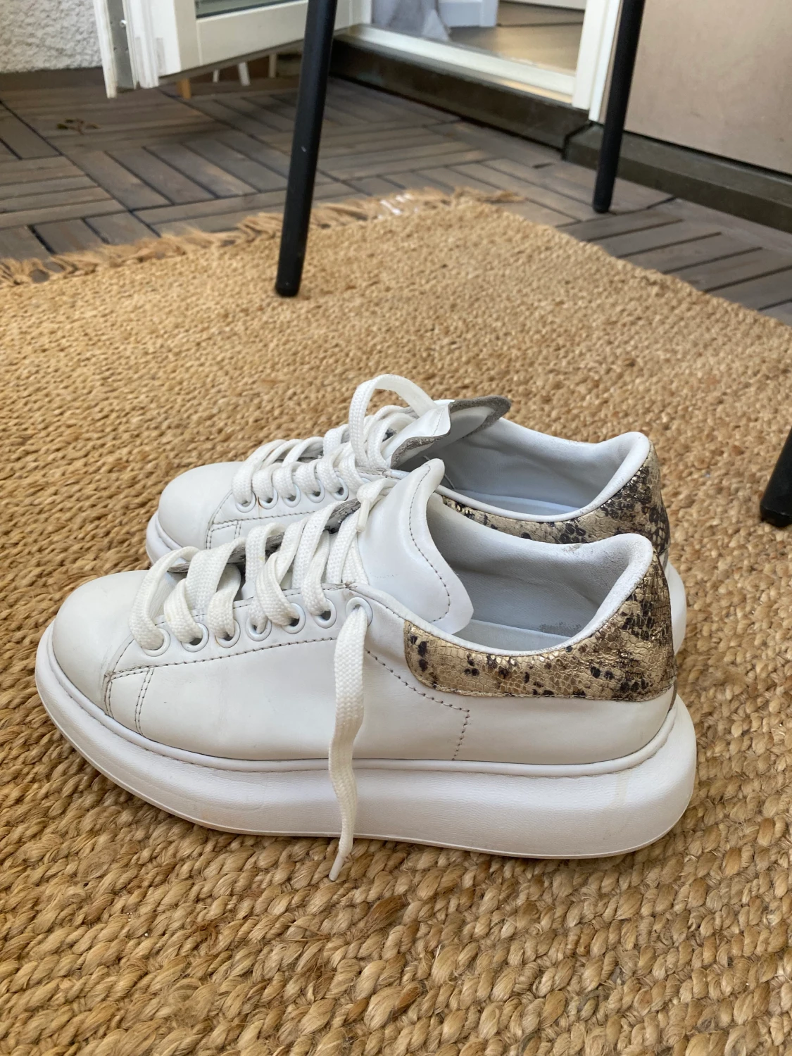 100% tillverkad av leder. Kan verka att skorna är tunga med det är inte der. Passar till alla still. Tyvärr att köpt lite för lite. Ändå försökte ha de på mig men orkar inte längre. Väldigt ledsen att jag är tvungen stt sälja dom.