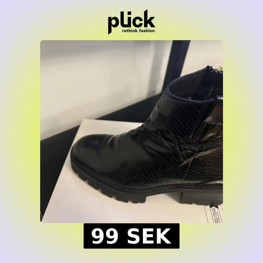 Snygga svarta boots i skinn med dragkedja på sidan. De har en robust sula med grovt mönster för extra grepp. Perfekta för både stil och funktion.