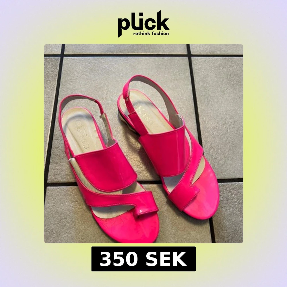 Snygga rosa sandaler från QKiss med en unik gulddetalj på klacken. De har en öppen tå och remmar som ger en modern look. Perfekta för att sätta färg på din outfit! Se bilder för skick