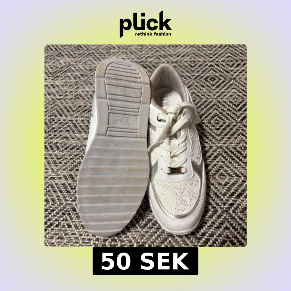 Snygga vita sneakers från Inci med silvriga detaljer och mönstrad textur på sidorna. Skorna har snörning och en platt sula, perfekta för en sportig och trendig look. Passar till många olika outfits och ger en fräsch känsla.