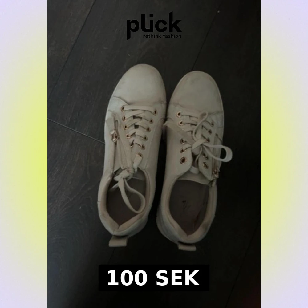 Beige sneakers med gulddetaljer