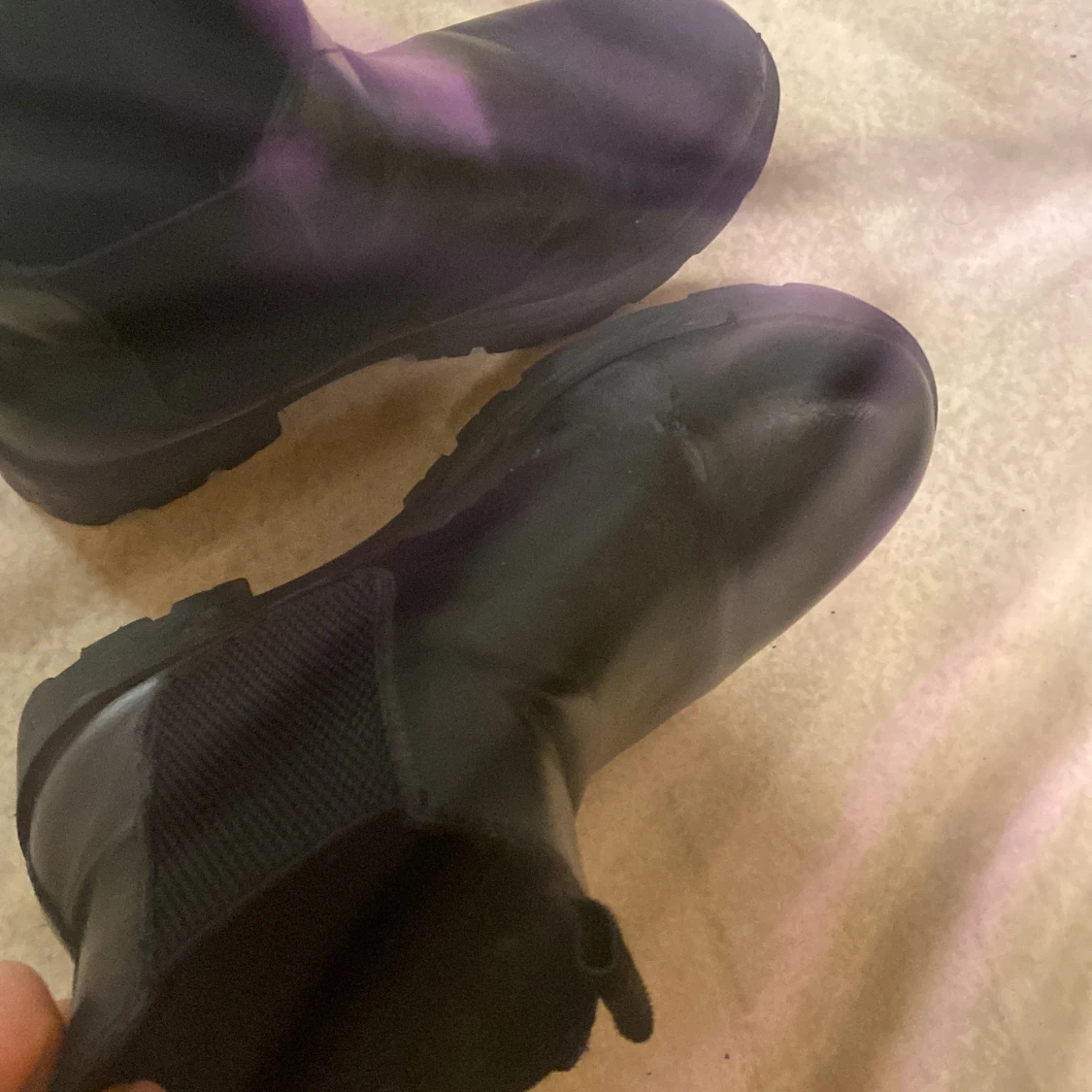 Säljer dessa boots i strl 38, svart Defekter finns bara på kanten skinnet har lite släppt annars ser det bra ut.