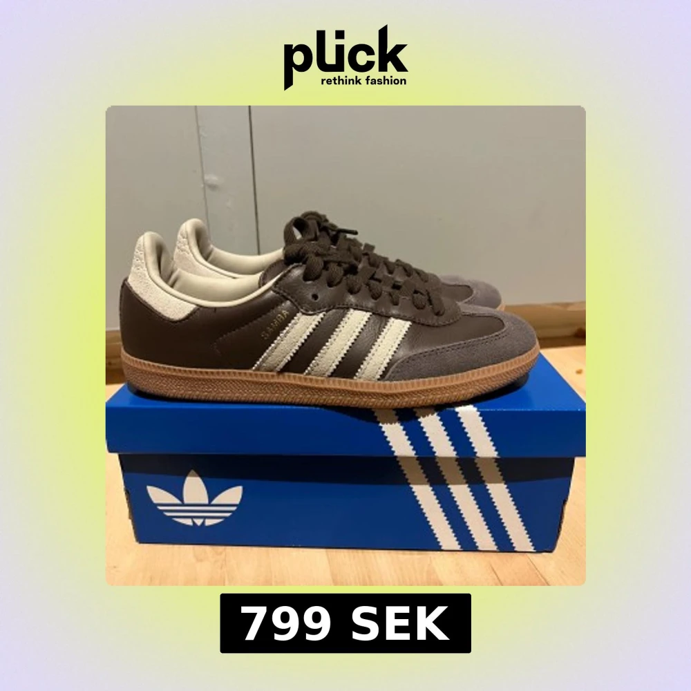 Säljer ett par bruna Adidas Samba OG i storlek 39 1/3, perfekta till hösten🍁. Dem nästintill nya, endast använda fåtal gånger. Hör av er vid frågor!