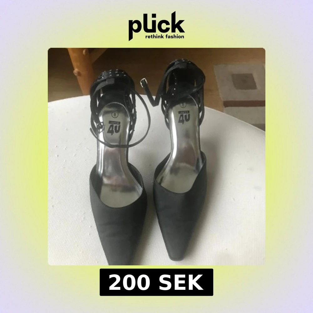 Snygga svarta pumps från Juse 4U med spetsig tå och smal klack. Skorna har coola nitar och remmar runt hälen samt justerbart spänne vid ankeln. Perfekta för dig som vill sticka ut med en edgy stil.