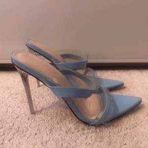 Snygga blå klackskor med spetsig tå och transparenta remmar.