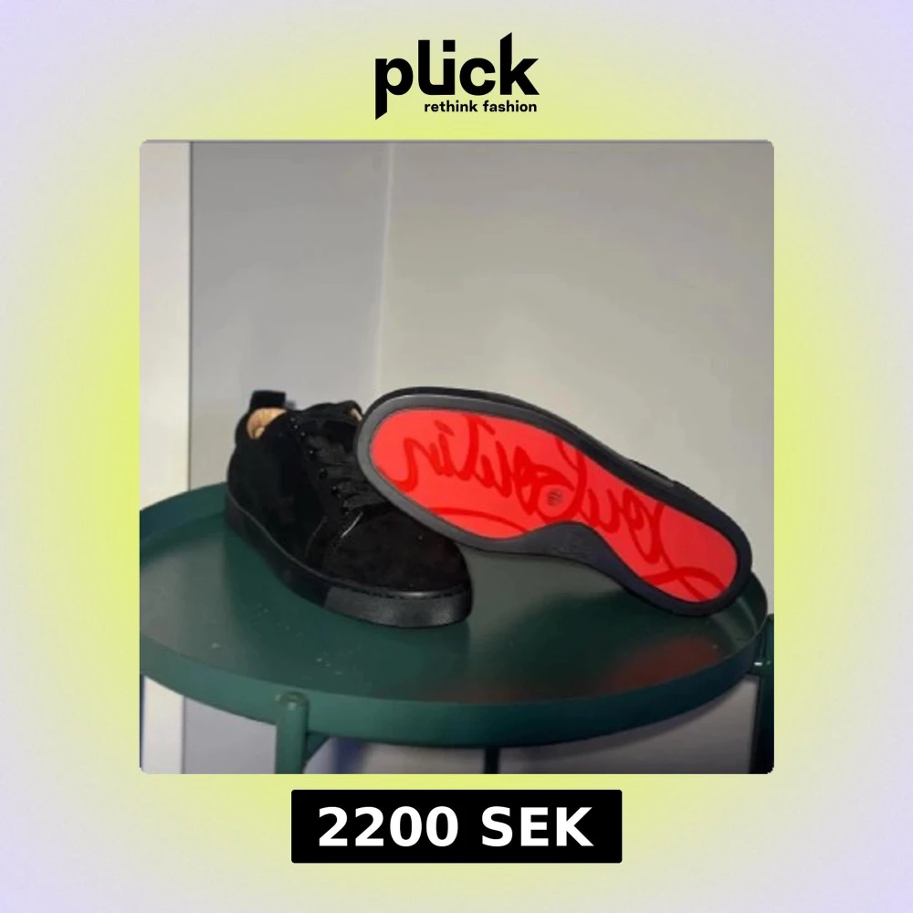 Snygga svarta sneakers med en iögonfallande röd sula. Skorna har en klassisk design med snörning och är perfekta för en stilren look.Det är äkta loubs!!
