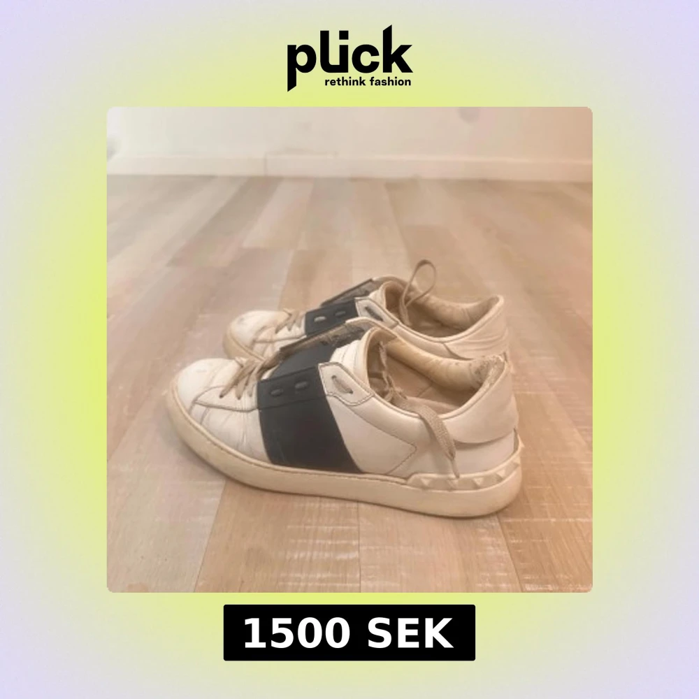 Säljer mina valentino köpta 2022. Äkta! Vet dock tyvärr inte om jag har kvar allt jag fick med och äkthetsbeviset på dem, isåfall ska det finnas ett par nya skosnören i orginalpåsen som jag fick med när jag köpte dem. Det är bara att be om fler bilder om ni vill se specifika delar på skorna som tex bevisar på äkthet! Slitna därav pris🩷
