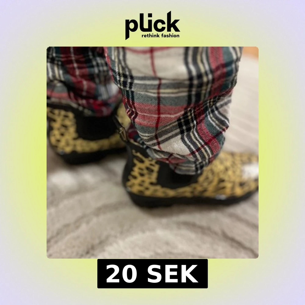 Snygga leopardmönstrade stövlar med svarta detaljer. Perfekta för att ge en djärv touch till din outfit. De har en robust sula och är idealiska för regniga dagar.