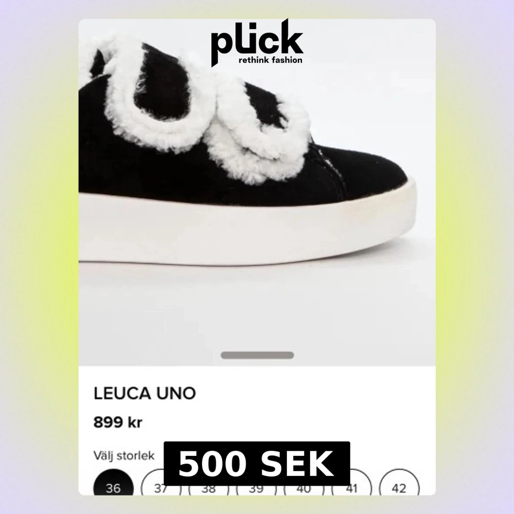 Svarta sneakers med vit platt sula och fluffiga vita fuskpälsdetaljer längs kardborrebanden och kanten. Skorna har rund tå och är tillverkade i mocka med syntetisk päls för extra mysig känsla. Perfekt för dig som gillar en unik och bekväm stil. Helt nya med kartong