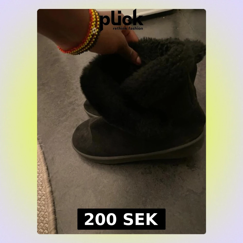 Smutset går att torka bort med våtservetter.Mysiga svarta boots med rund tå och platt sula. Utsidan är i mocka och insidan har tjockt, fluffigt pälsfoder som går upp över kanten. Perfekta för kalla dagar när du vill ha både stil och värme.