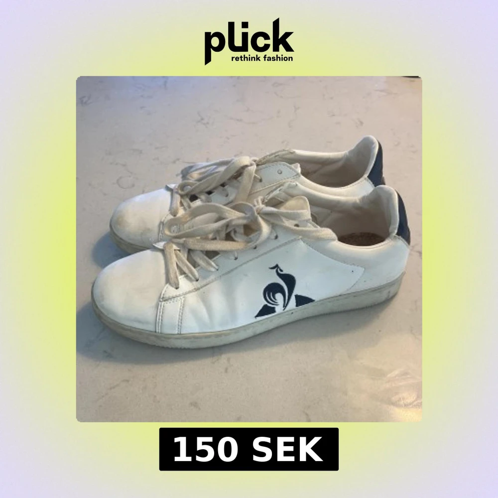 Säljer ett par vita sneakers från Le Coq Sportif med mörkblå detaljer och snörning. Skorna har en klassisk design med märkets logotyp på sidan.