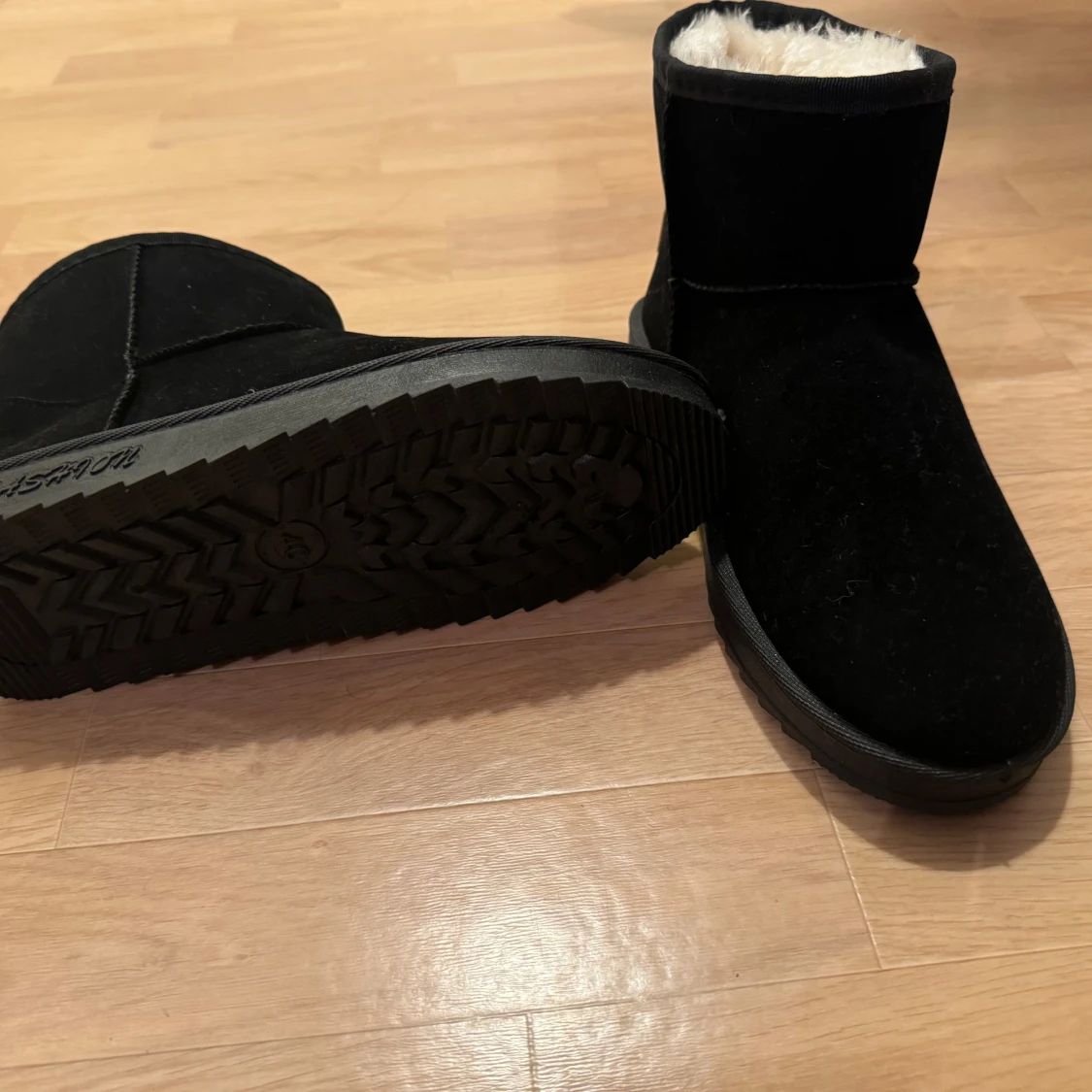 Mysiga svarta boots med mjukt foder inuti. Perfekta för kalla dagar med en stilren design och bekväm passform. Helt oanvända