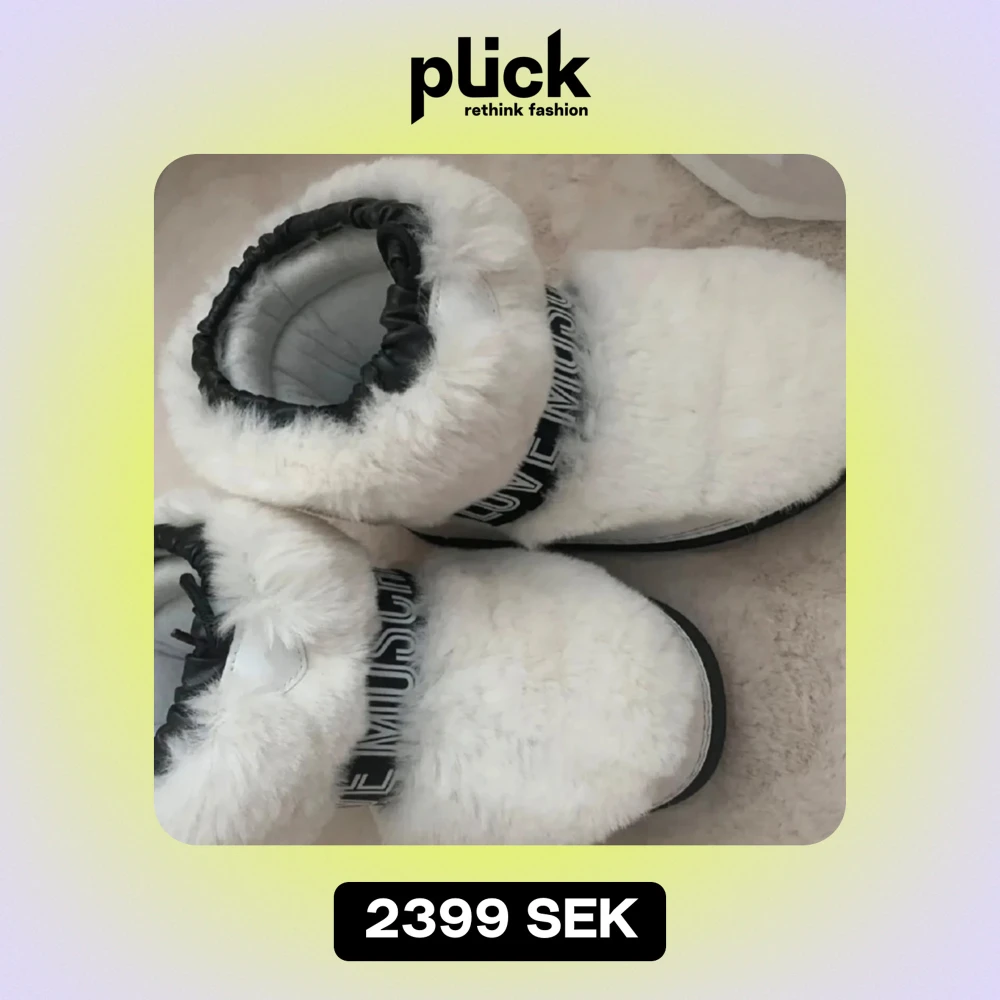Supermysiga vita moschino boots med päls. De är köpta för 4 000kr. De har en elastisk snörning upptill för en tight passform om man skulle vilja. Virala på TikTok förra vintern! ❄️kan leverera samma dag!