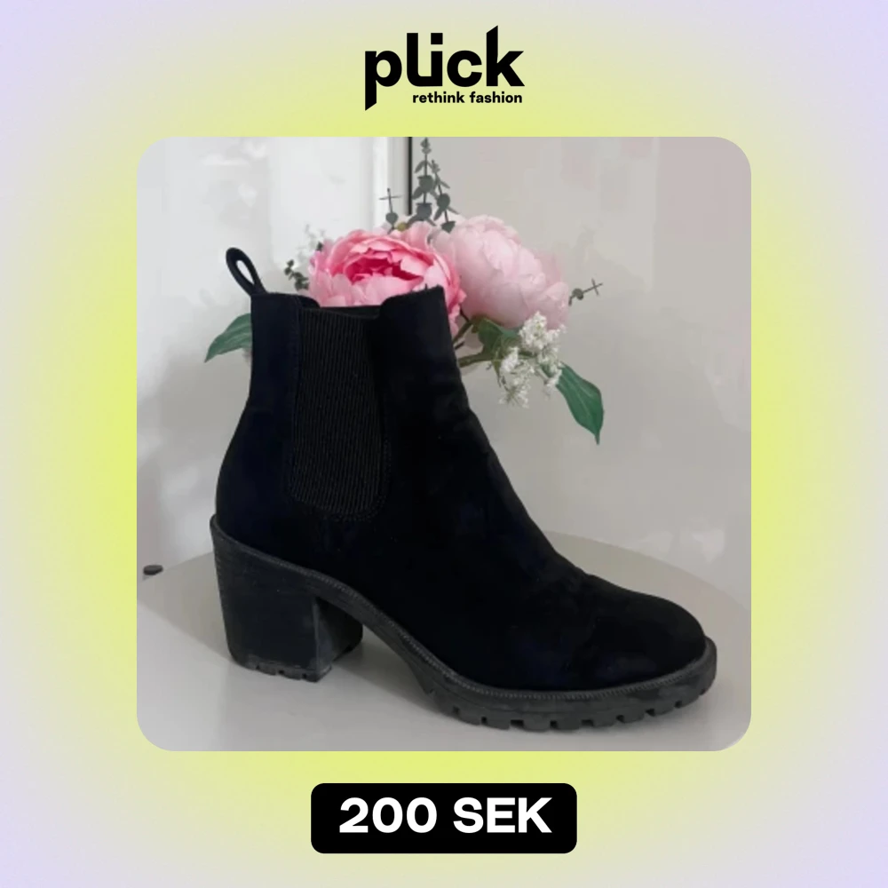 Säljer ett par snygga svarta Chelsea boots i mocka. De har en robust klack och elastiska paneler på sidorna för enkel på- och avtagning. Perfekta för höst och vinter!